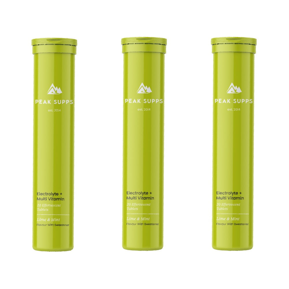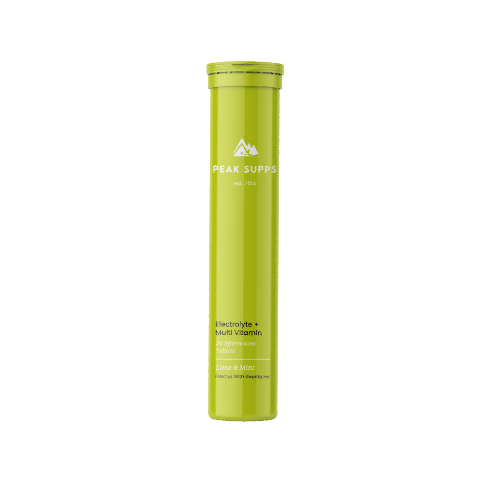 Peak Supps Electrolyte & Multi Vitamin Effervescent Tablets is a blend of 14 carefully selected vitamins and minerals that offer a variety of benefits with the refreshing taste of Lime Mint. Some ingredients include Vitamin C, Calcium, Potassium and Zinc.