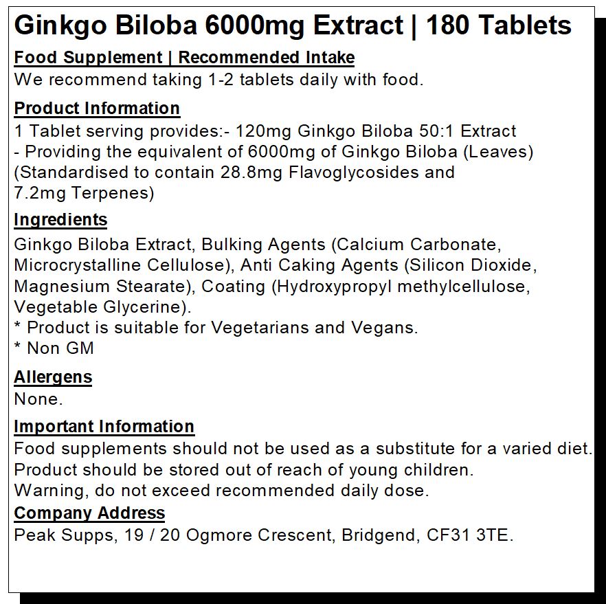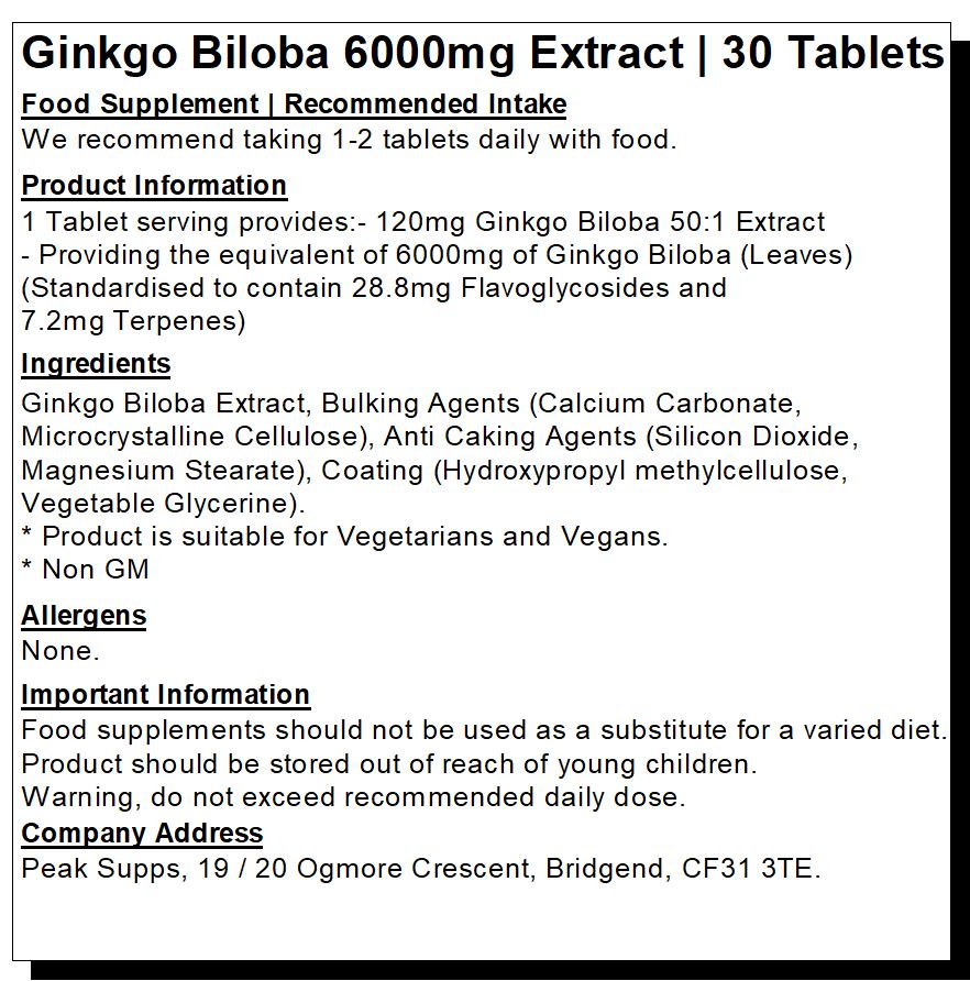 Peak Supps Ginkgo Biloba 6000mg Tablets are suitable for those looking for a high-quality Ginkgo Biloba supplement. They are suitable for the general public and athletes.