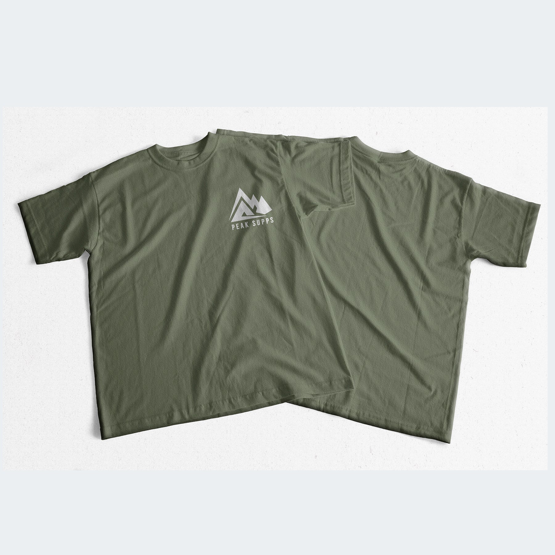 Peak Supps green khaki basic unisex T-shirt white logo.