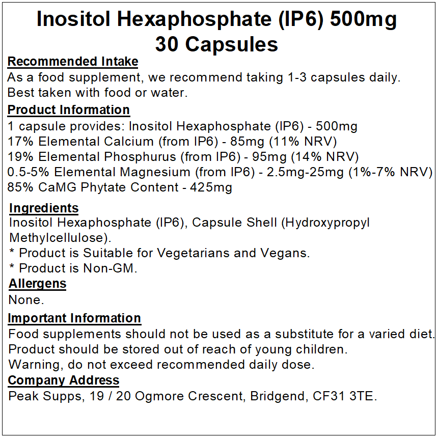 Inositol Hexaphosphate (IP6), Capsule Shell (Hydroxypropyl Methylcellulose).