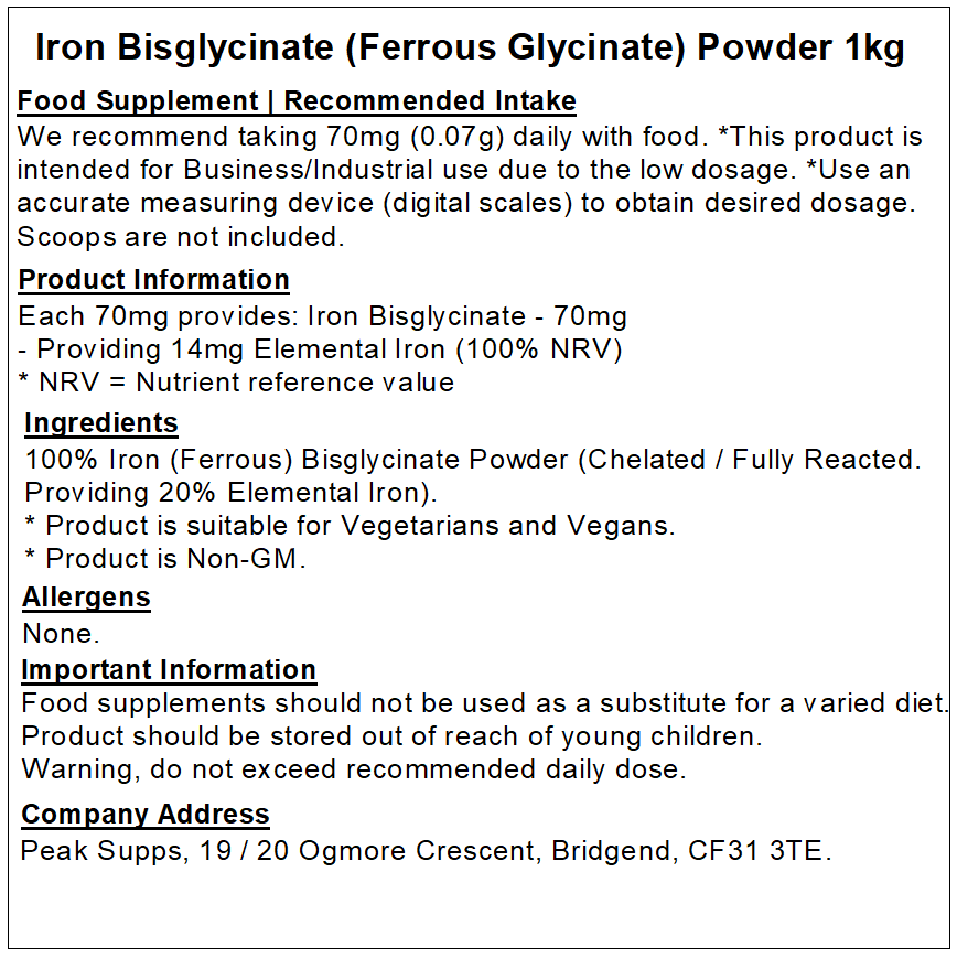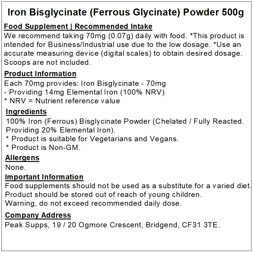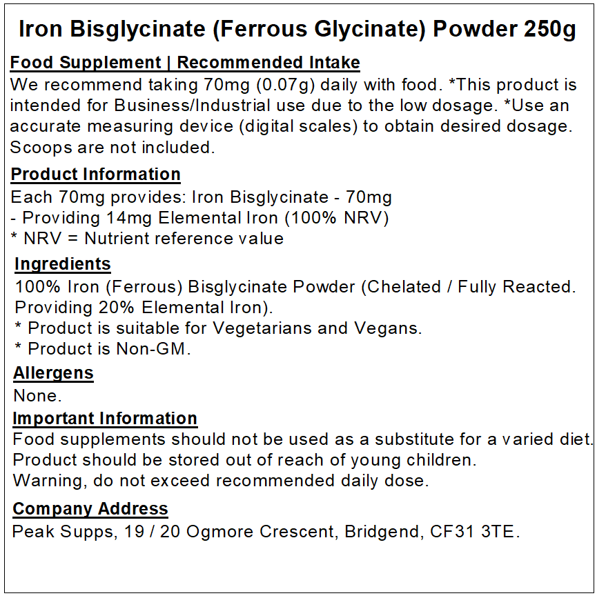 Peak Supps Iron Bisglycinate Powder is suitable for those looking for a high-quality Iron supplement. They are suitable for the general public and athletes.
