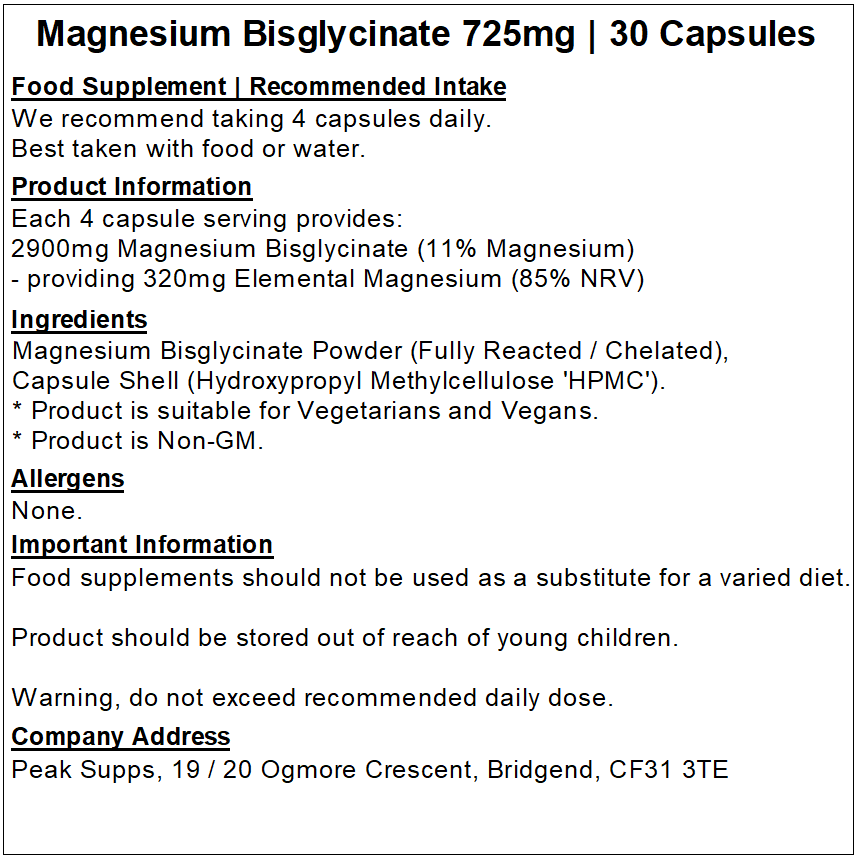 Peak Supps Magnesium Bisglycinate Capsules are suitable for those looking for a high-quality Magnesium Bisglycinate supplement. They are suitable for the general public and athletes.