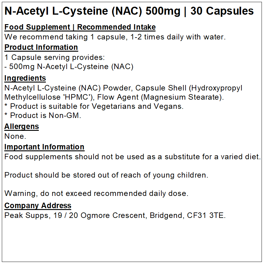 N-Acetyl L-Cysteine (NAC) – 500mg
