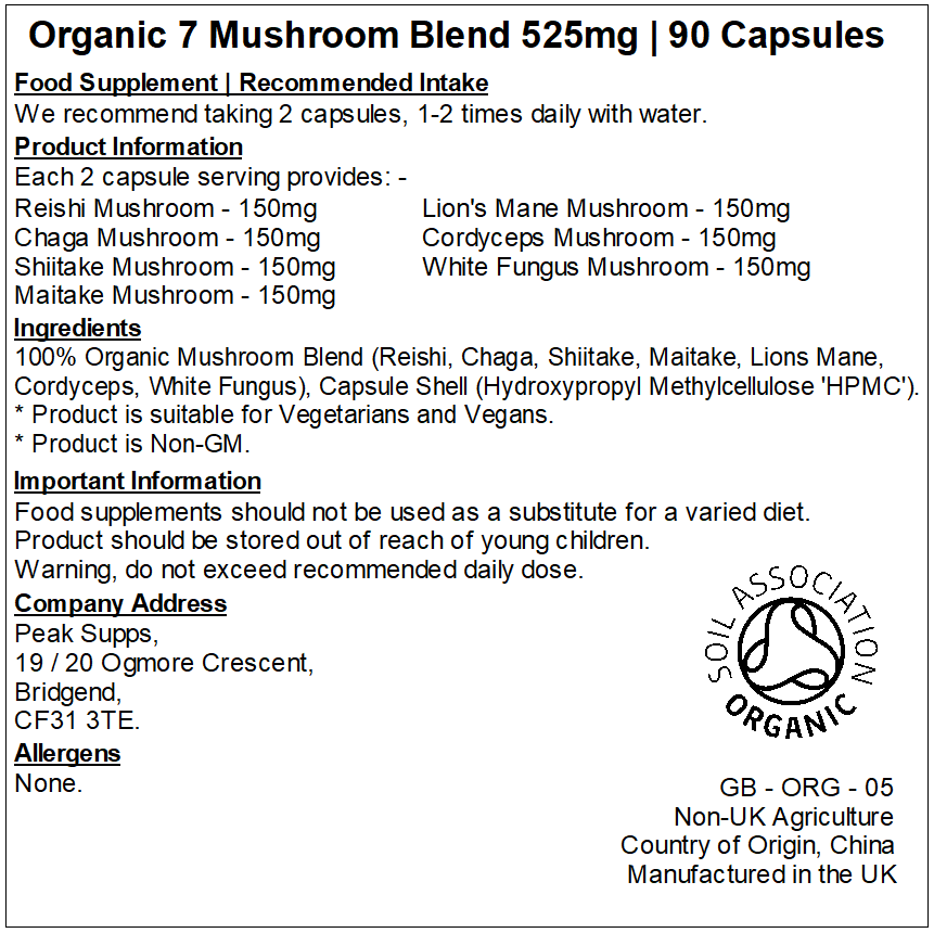 Peak Supps Organic 7 Mushroom Capsules is suitable for those looking for a high-quality Organic 7 Mushroom supplement. They are suitable for the general public and athletes.