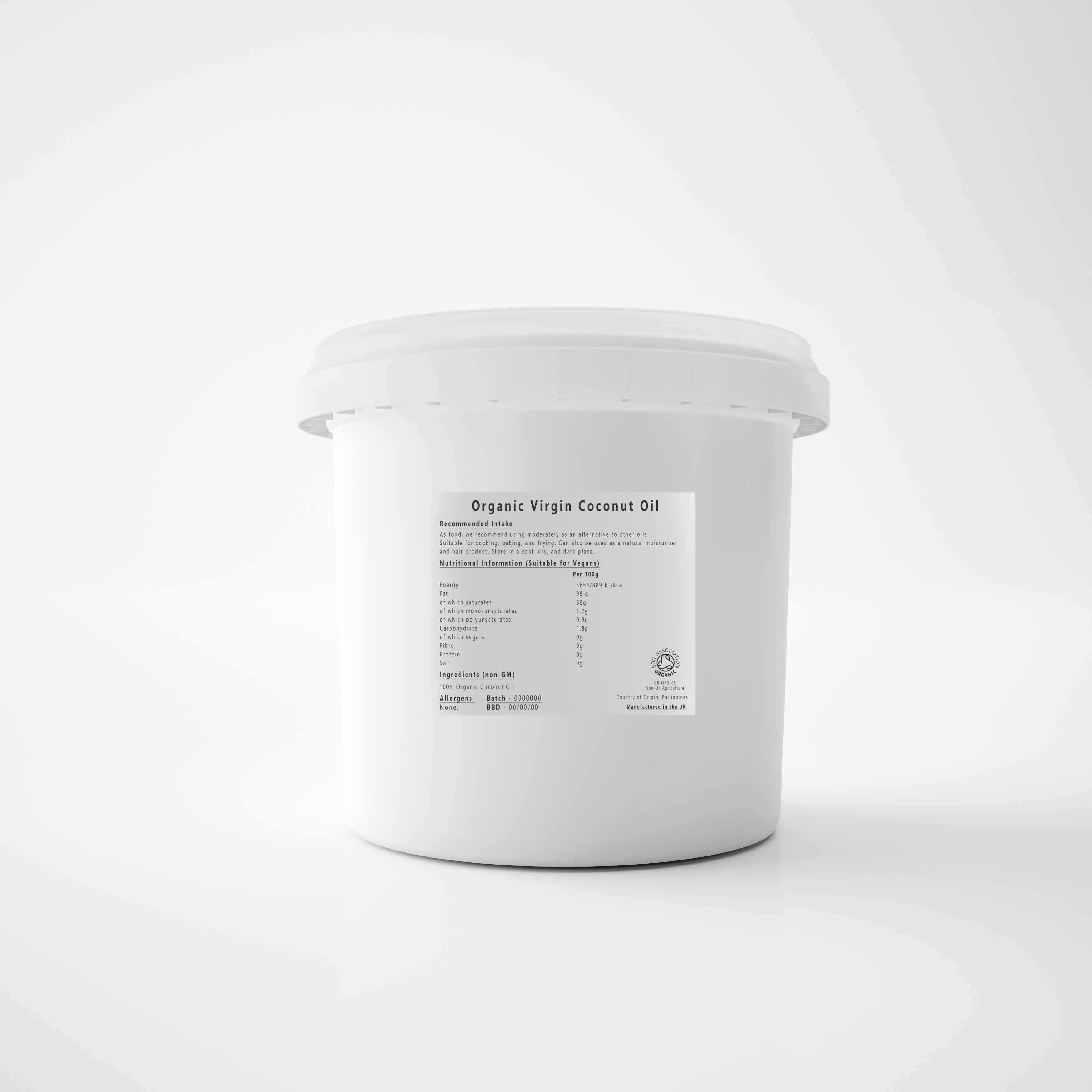 Our bulk 10 litre tubs are ideal for bakeries, restaurants or coconut oil enthusiasts. When kept below 25°C, the oil becomes solid and can be used similarly to butter. Coconut Oil can also be used for skincare or haircare. It can be easily applied to the skin as it melts at body temperature.