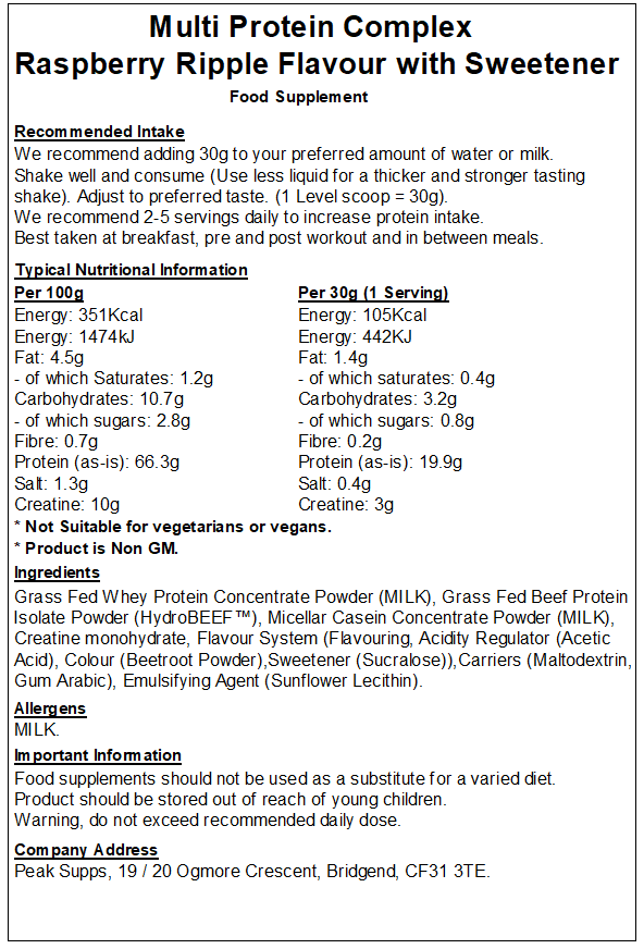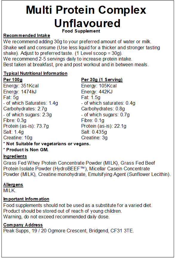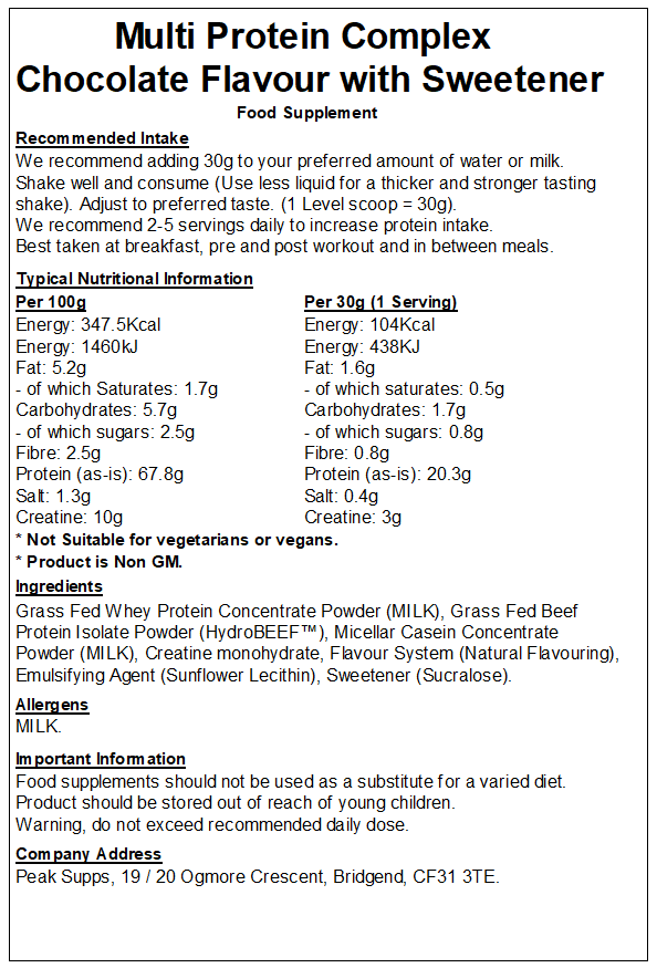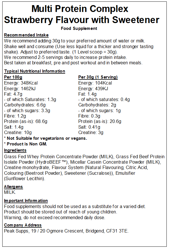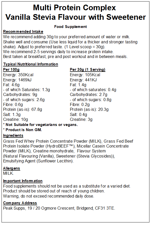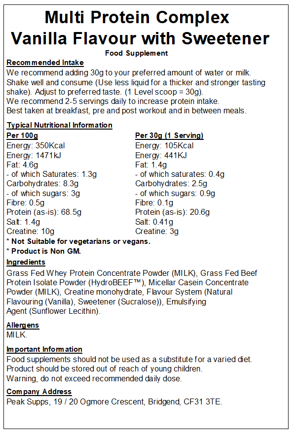 Peak Supps Multi Protein Powder is a mix of high-quality protein sources, formulated to support muscle growth. Each serving delivers a sustained release of amino acids, making it ideal for use at any time of the day.